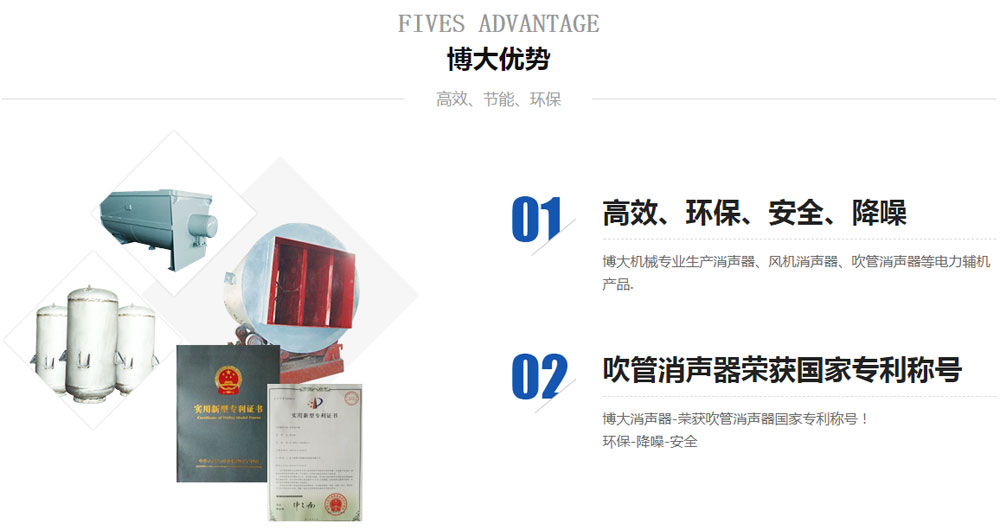 您好,歡迎光臨連云港博大機械設備制造有限公司官網!購買消聲器,消音器,吹管消聲器,風機消聲器,首選博大機械!